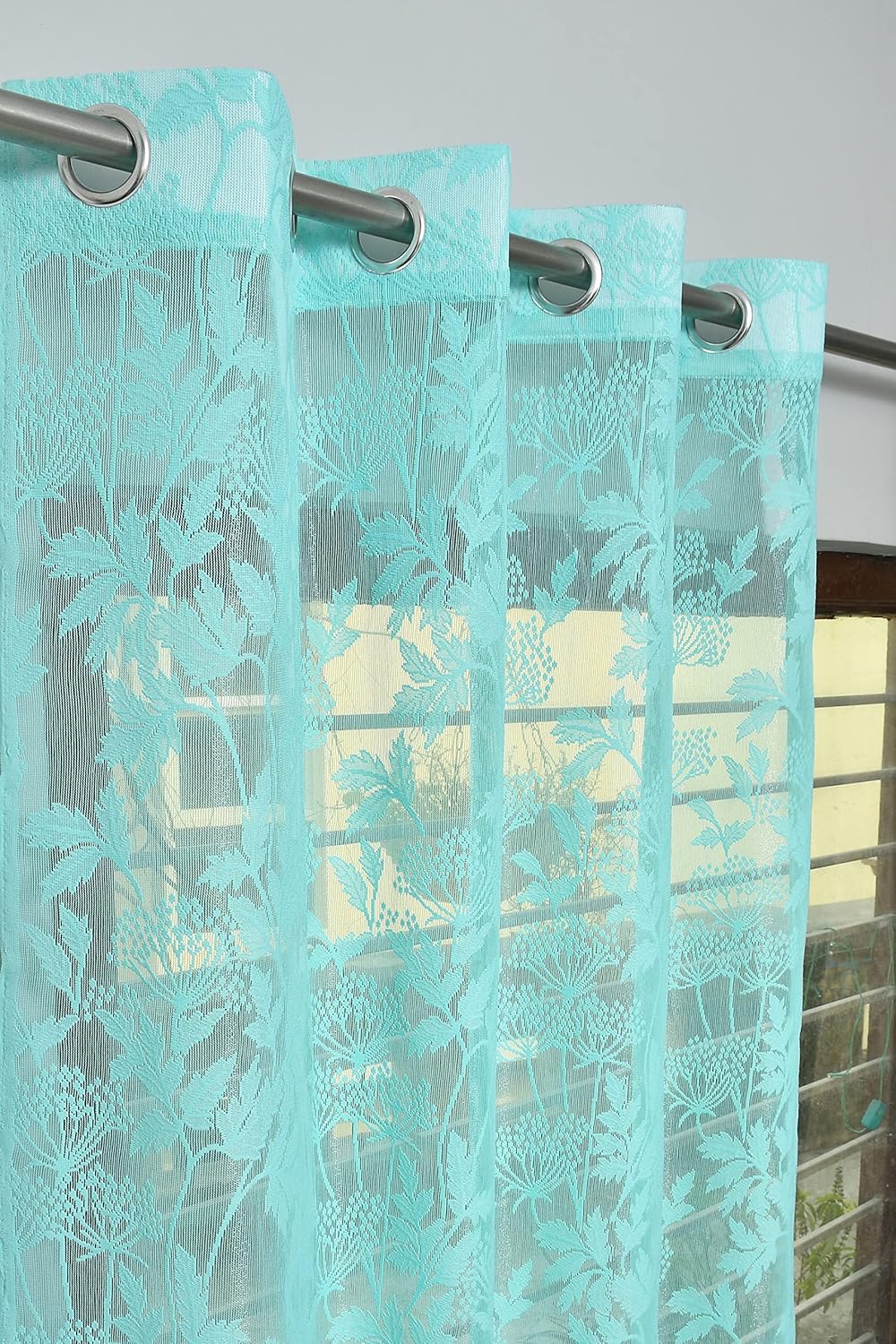 The soothing aqua color adds a refreshing and calming vibe to your room, making it ideal for both contemporary and classic décor styles. The delicate floral pattern enhances the visual appeal, creating a soft and elegant look that blends effortlessly with your furniture and wall colors. These sheer curtains are designed to gently filter natural sunlight, allowing your room to stay bright and welcoming without harsh glare. These aqua sheer curtains are perfect for modern homes and enhance any room with soft natural lighting.