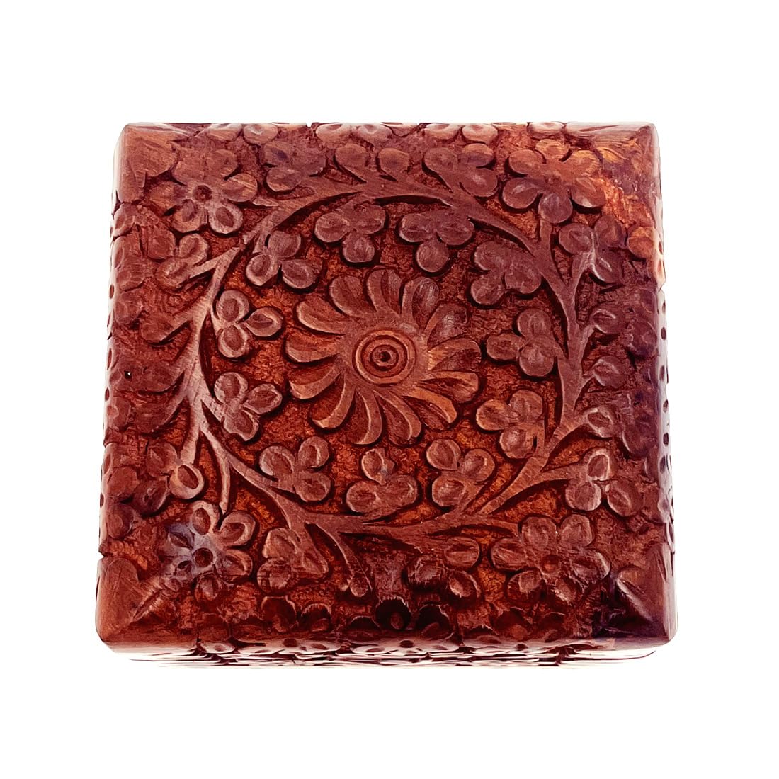 Handmade Wooden Jewelry Box for Women Jewel Organizer Hand Carved with Intricate Full Kashmiri Carvings Wood box (4 X 4 Inch)