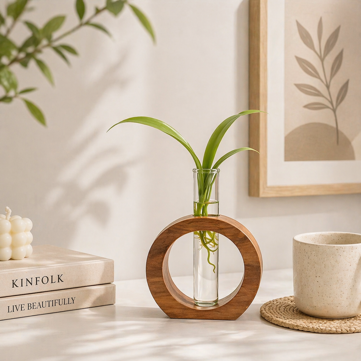 Whether you are redesigning your home decor or simply looking to add a small yet impactful accent piece, this wooden ring glass vase delivers on both style and practicality. It effortlessly blends into any setting while drawing attention with its unique structure. The clean lines, natural texture, and transparent glass create a balanced composition that enhances the beauty of whatever you choose to display inside it. Learn more about hydroponic plants here.